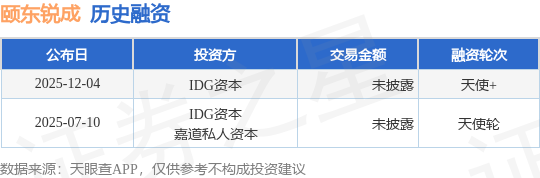 证券之星音问,凭证天眼查APP于12月4日公布的信息整理,杭州颐东锐成生物科技有限公司天神+融资,融资额未流露,参与投资的机构包括IDG本钱。