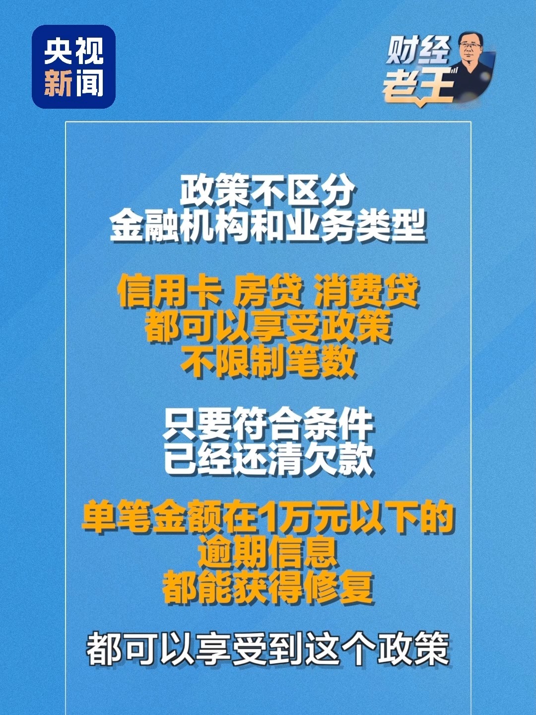 第一,战术不离别金融机构和业务类型,也等于不管你是信用卡照旧房贷照旧浮滥贷皆不错享受这个战术,同期也不罢休笔数,唯有合乎条款、如故还清欠款、单笔金额在1万元以下的过期信息,皆能获取建设。